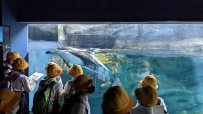 ペンギン、イルカがいます。いよいよジンベエザメともご対面です!