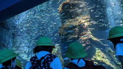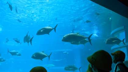 イワシの大群がいました。飼育員さんも水槽の中にいました!