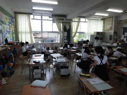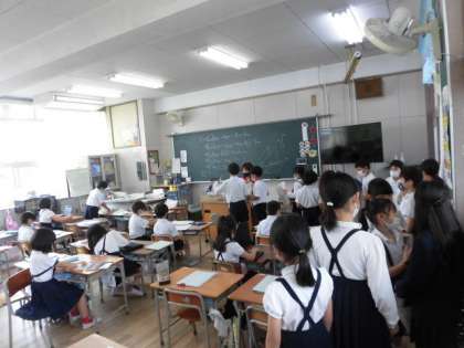 cmとmmの足し算をしています。計算をした後に、先生にチェックをしてもらっています。