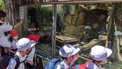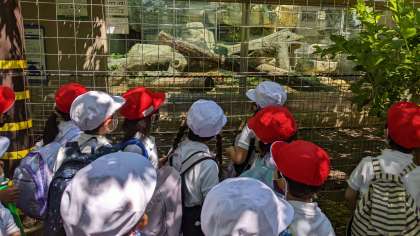 まずはインコがいました。ライオンさんは寝ていました。ジャガーとヒョウがじゃれあっています。