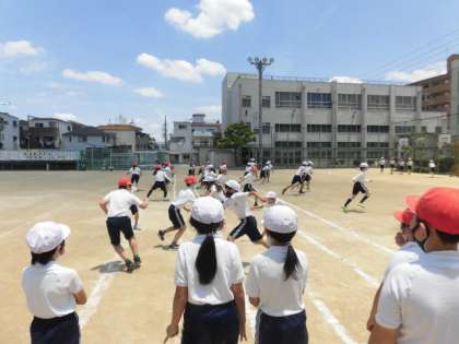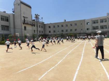 今日は「ねことねずみ」でトレーニングをしています。2つのチームに分かれて、言われた方のチームが逃げて、言われていない方のチームが追いかけます。たくさん走りました。