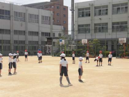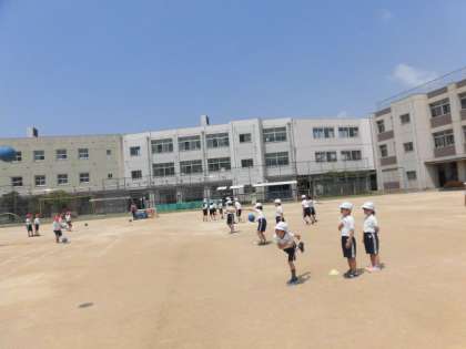 二人一組でキャッチボールをしています。上手に投げることができたかな?
