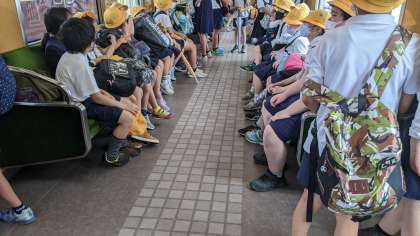 やっぱり校外での学習は楽しいです。もうすぐ神崎川駅に着きます