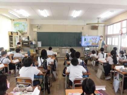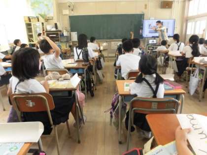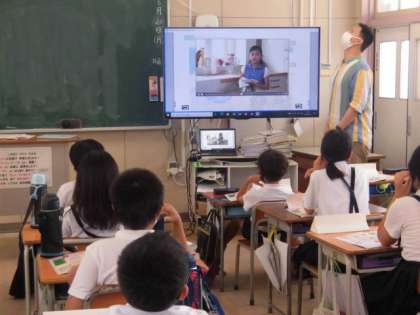 「えいぞうを見て世界の子どもたちの生活についてしろう」ということで、いろいろな国の生活について、英語で確認をしています。
