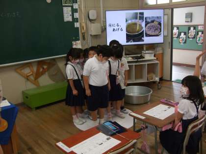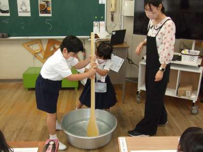 大きな泡だて器やみんなと同じくらいの大きさのへらにびっくりでした。