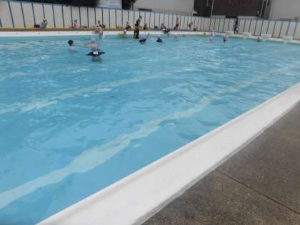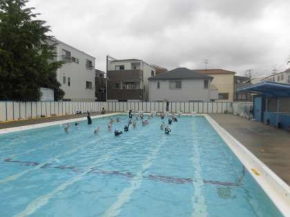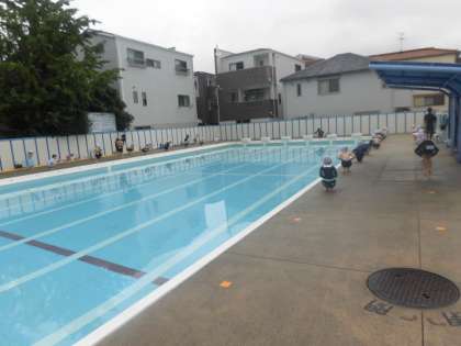昨日はあいにくの雨でしたので、プールの授業がありませんでした。今年のプール一番乗りは1年1組です。準備運動をした後の冷たいシャワーに、悲鳴があがってました!活動が始まってからは、水中でダンスをしたり、歩いたりして楽しい時間を過ごしました。