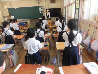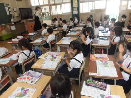 3組は音楽です。今日習った初めての歌も、音楽を聞きながら上手に歌っていました。カスタネットのリズムも随分とそろってきています。