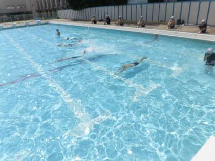 今日は暑かったので、午後からのプールの授業はとても気持ちが良かったです。けのびからクロールをしたり、宝探しをしたりしました。