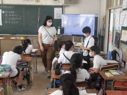 各地の気候の特色について、考えています。班でいろいろな意見交流をしています。