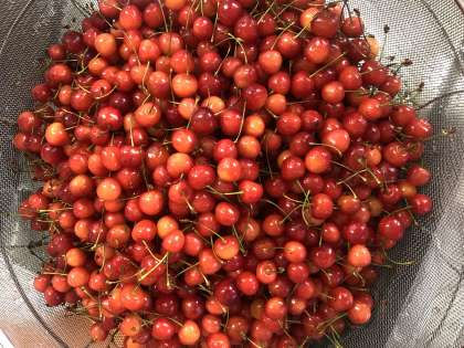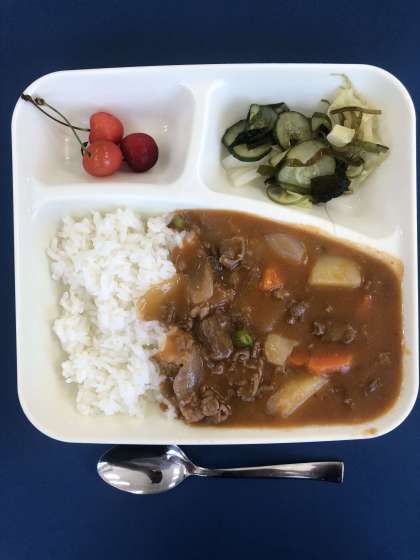 今日は旬の果物、「さくらんぼ」が登場しました。種類は「佐藤錦」が来ていました。
