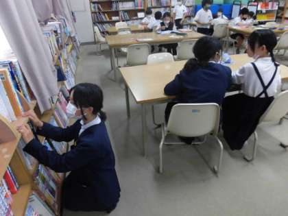 1組は図書室で各自が学習をしたり、本を読んだりしています。2組と3組は小数の割り算に取り組んでいます。