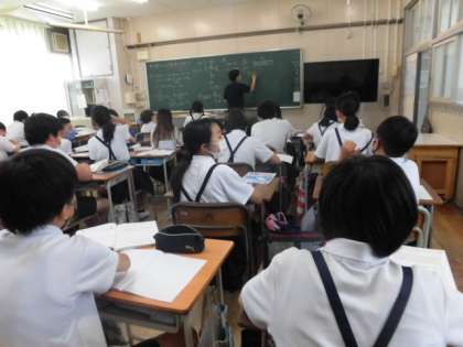 「割合から全体の量を考えよう」ということで、分数÷分数の問題に取り組んでいます。ややこしいなあ!
