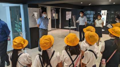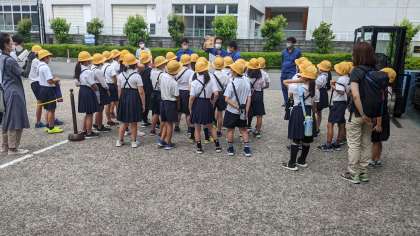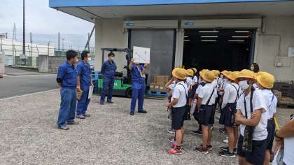 まずは、工場見学の流れについての説明を受けています。