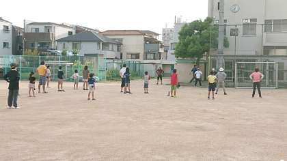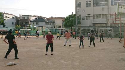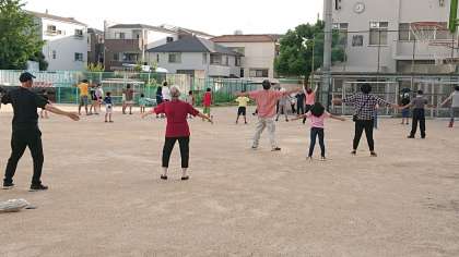 待っている間は、眠そうにしていた子どもたちも、ラジオ体操が始まったとたんにキリリと引き締まった顔になりました。