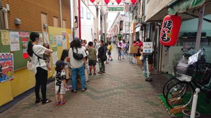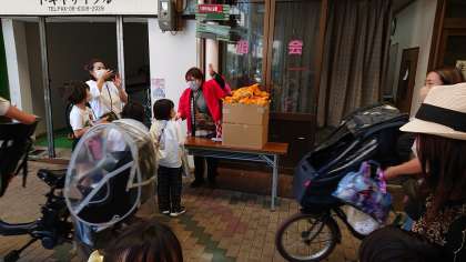 みこしを楽しみに集まって来た子どもたちには、地域の方々や企業からいただいたお菓子が配られていました。