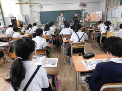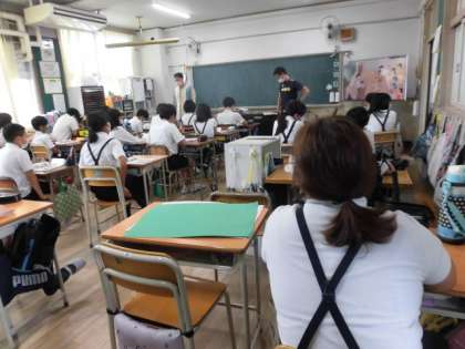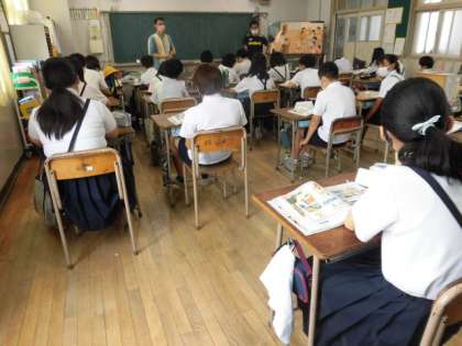 夏休みの出来事や感想をどのように言うかをC-NETの先生と一緒に考えています。