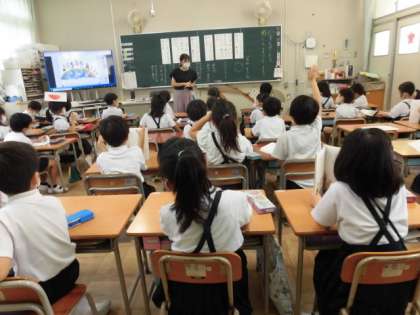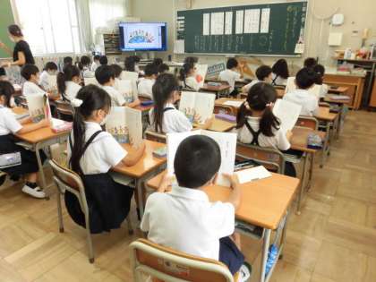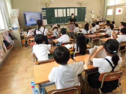 「あるけ あるけ」の詩を学習しています。音読では手でリズムを取りながら、テンポよく音読できていました。