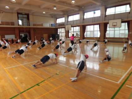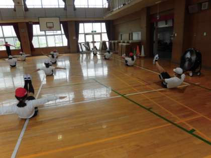 運動会の練習が始まっています。いろいろなポーズをしています。自分の体を支えるのがなかなか難しい!