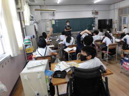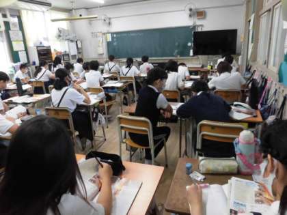 奈良の大仏がなぜつくられたかを考えています。実際に、新聞紙で大仏の手のひらの大きさをつくってみると、20人くらい乗れました!