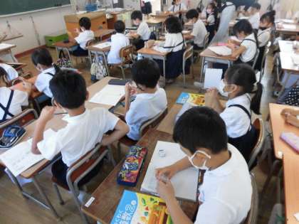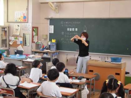 いろいろな容器でかさを調べています。1つのメモリが1mLの10mLマスでメモリを確認しています。めちゃくちゃ小さいなあ!