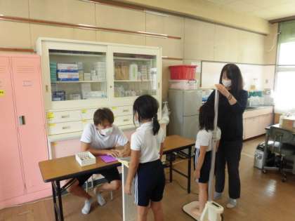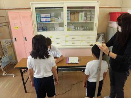 保健室にくるまでもしっかりと並んできています。みんな1学期よりも随分と大きくなりましたね!