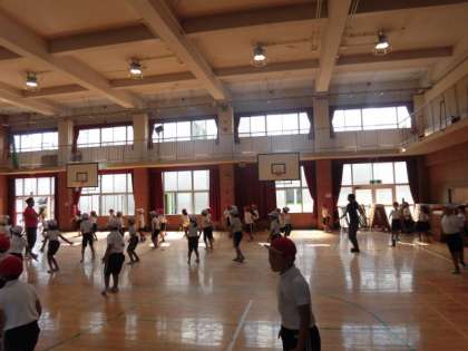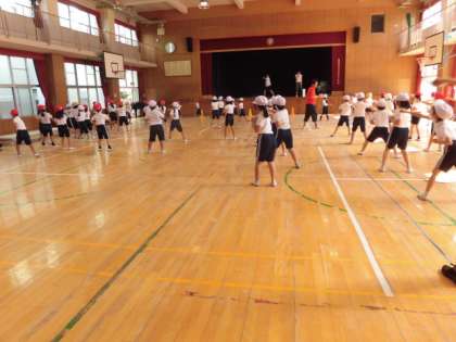 今日は体育館で運動会のダンスの練習です。通しで練習をしています。覚えるのが早いですね!