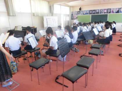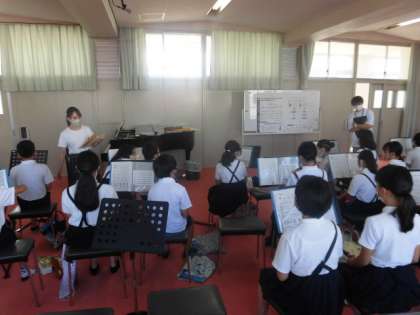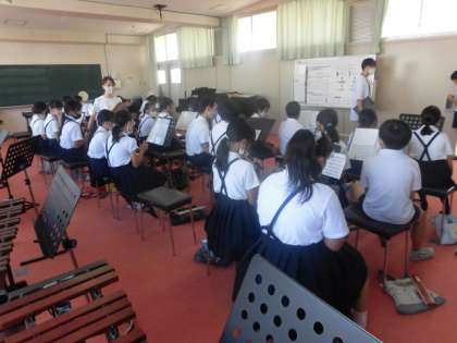 二人ずつペアで「大きな古時計」のリコーダーのテストをしています。きれいな音色を響かせていました!