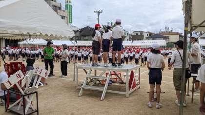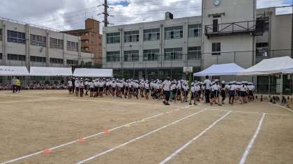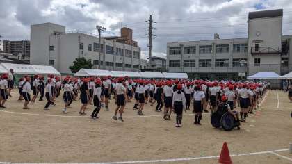 ラジオ体操も、狭いスペースの中、しっかりとできていました。
