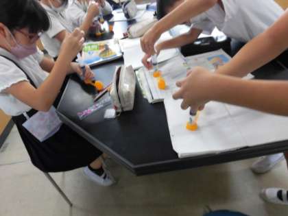 閉じ込めている空気に弱い力や強い力をかけると、どのようになるのかを実験しています。手を離すと元通りになるのが不思議ですね。