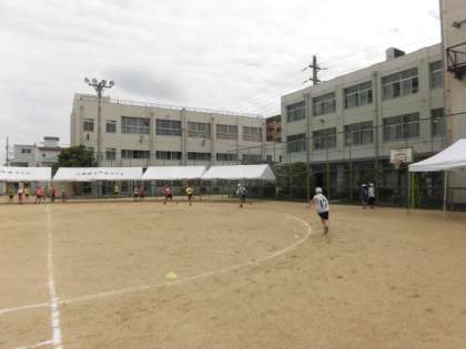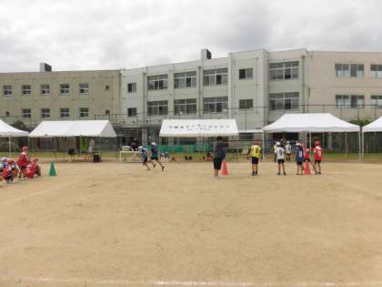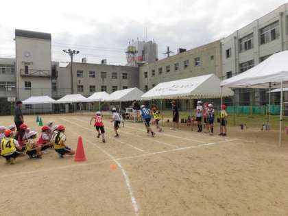 今日は運動場でリレーの練習をしています。バトンパスもスムーズに行えていました。