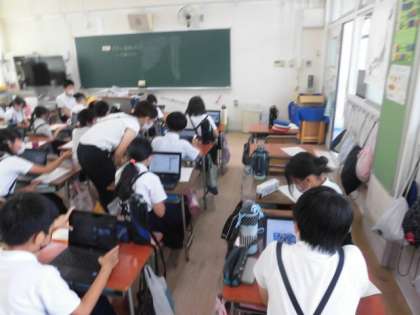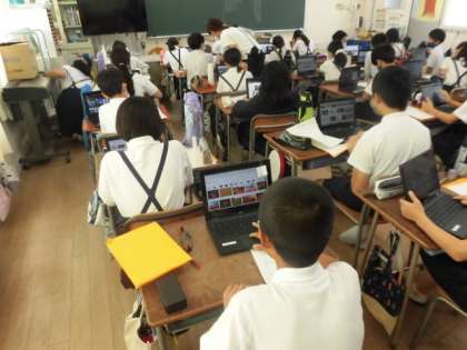 運動会が終わり、今度は作品展に向けての制作が始まっていきます。自分が興味のある「世界に一つだけの花」をタブレットで探しています。先生の見本みたいに上手にできるかな?