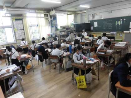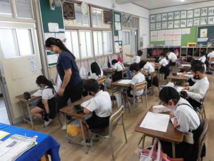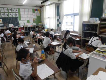 1組と3組がテストをしています。「あまりのある割り算」です。だんだんとややこしくなるけど、がんばってね!