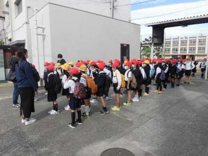 今日は淀川消防署に行きます。元気に「いってきまーす!」