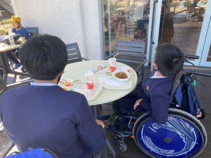 お昼ごはんは、自分たちが行きたいお店を決めて、行きます。何を食べようかな?