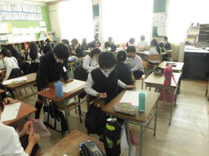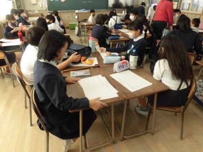 いろいろな図形をどのようにして解くかをグループで考えて、先生の代わりにみんなに解き方を教えます。そのために、しっかりと話し合いをしています。