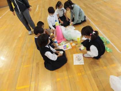 2時間目は2年生1組が1年生1組を「おもてなし」しています。2年生がしっかりと1年生を楽しませています!
