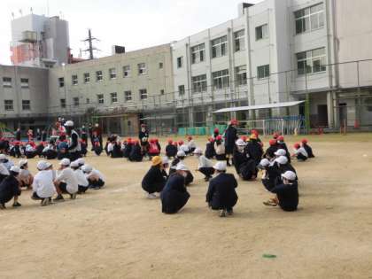 どかん!と言った時にボールを持っている人が、自己紹介をします。来週の全校オリエンテーリングに向けて、楽しく活動することができました!