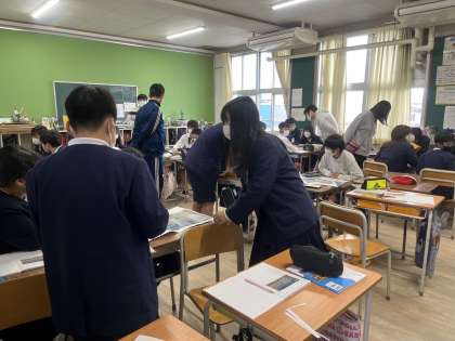 昨日は、研究授業だったので、多くの先生が見学にきていました。江戸時代に描かれた2つの絵から、大阪ならではの文化について、話し合いをしました。