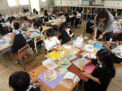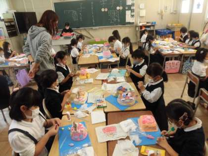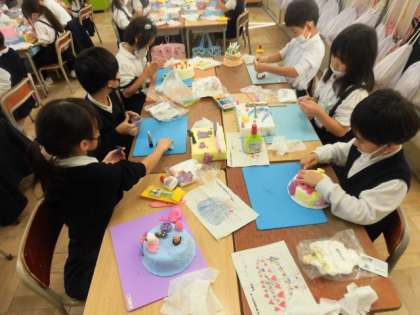 「たべてみたいなゆめのケーキ」が、完成に近づいてきました。みんな工夫をこらしていて、出来上がりが楽しみです!