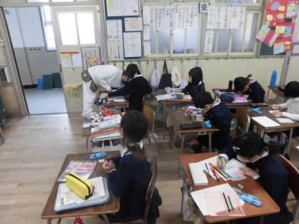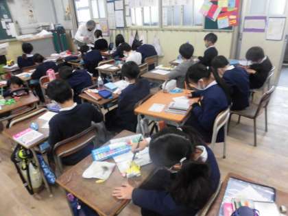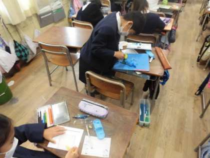 シーサーづくりの続きをしている人がいます。仕上げ段階に入っています。終わった人は、先日訪問した株式会社ゴールさんへのお礼の手紙を書いています。