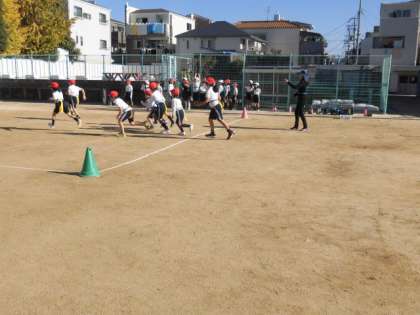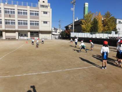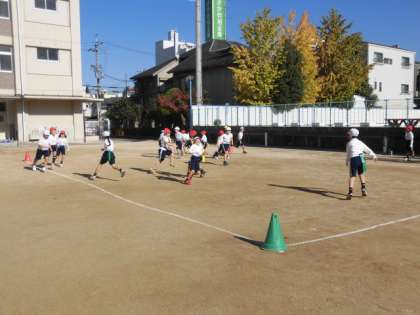 タグおにごっこをしています。今日は区切られた狭いスペースでしているので、逃げる方は難しいです!