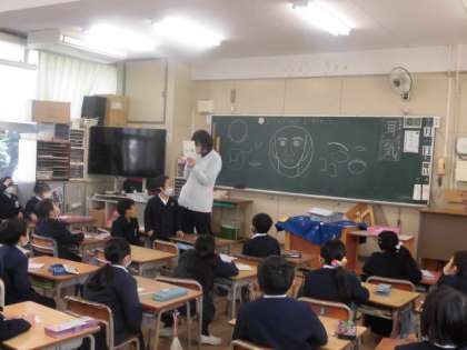 「じぶんのかおをよく見てかこう」ということで、自分の顔を描いていきます。よく見て描けています!