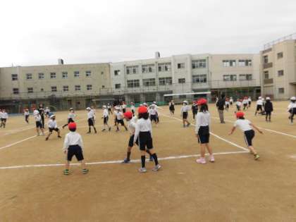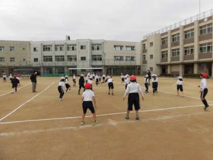 今日は全学級での体育です。ドッジボールを楽しんでいます。ルールも守れるようになってきています。