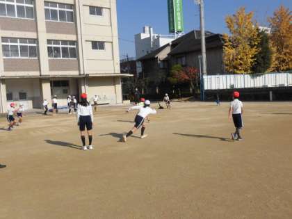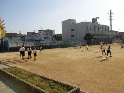 今日は1組対3組でティーボールの試合をしています。みんなバッティングが良くなってきましたね!クラス対抗は応援も盛り上がります。