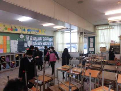 今日は6年生が教室やろうかの大掃除をしています。隅々まできれいにしようね!