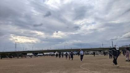 淀川の河川敷でたこあげ大会がありました。各自でたこあげをした後に、学校ごとに大凧あげがありました。一回目は上がらなかった凧も二回目は高くまであがりました!楽しい一日を過ごしました。