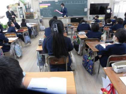昨日は4年生の研究授業がありました。たくさんの先生が見守る中、分数の足し算について考えました。たくさん意見を出してくれました。