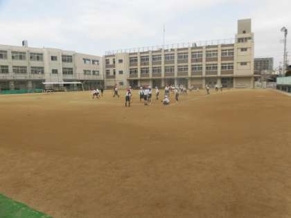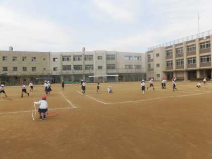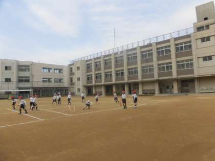今日はフラフープドッジの練習をしています。フラフープを転がすのが随分と上手になってきました!