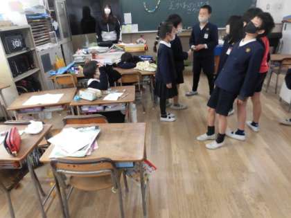 昨日5年生が新しく班長を引き継ぎました。今日は新しい班での初めてのなかよし班活動です。