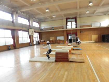 跳び箱の授業です。しっかりと開脚跳びができる人が増えてきました!